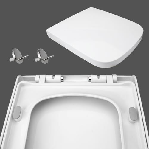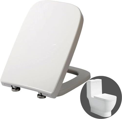 - Square-shaped toilet lid: Toilet seat fits most d-shape toilet pans as it comes with top fixing and adjustable hinges. Usually it stays tight by using top fixing otherwise you can use bottom fixing.