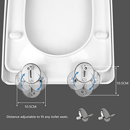 - Quick release toilet seat: with two botton, the toilet seat is easy to remove and easy to clean. Top fixed fittings included. Top fixing is convenient as it can be used to install toilet seat from above the toilet pan.