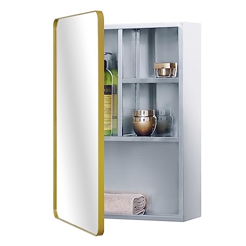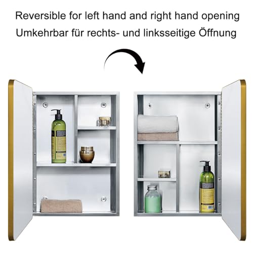 - 【Stylish door frame】The bathroom cabinet is with round corner golden door frame, which further enhances its aesthetic appeal.