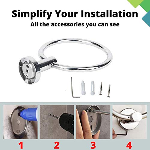 - SPACE SAVING: Towel rings provide a great place to hang towels. Minimum contact with the ring or wall. The sturdy towel ring leaves enough space for damp towels to dry quickly while fitting well with small room. Easy to hang or grab your towels, sleek stainless steel towel holder provides you with reasonable space
