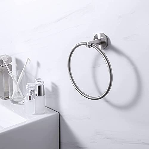 - 【Heavy Duty Material】Our Stainless Steel Towel Ring is Durable, Reliable and its premium quality gives a Luxury feel always. This anti-corrosive towel ring material never get rusty in damped and humid places like kitchen or bathroom. It far stronger than self-adhesives and suction cups.