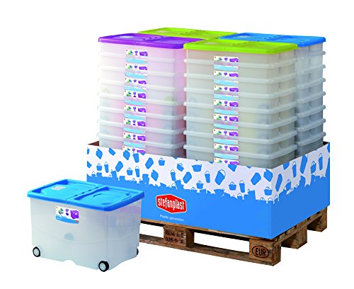 Stefanplast Vasco Stefanbox Case with Lid in Assorted Colours, Cyan/Magenta/Apple Green/Transparent, 60 x 40 x 36 cm
