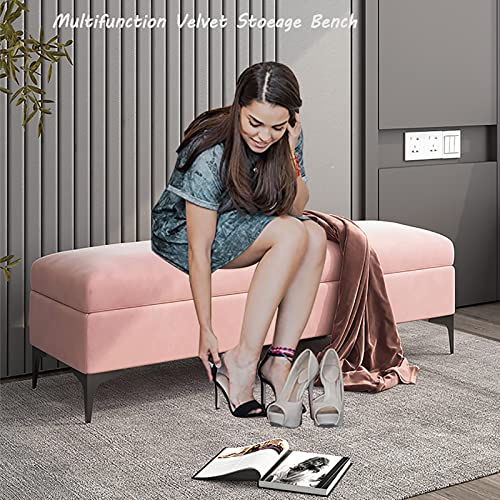 Storage Bench,Storage Bench Velvet Upholstered End of Bed Bench,Premium Storage Chest Bedroom Bench with Storage,No Need to Assemble-Wine red 100