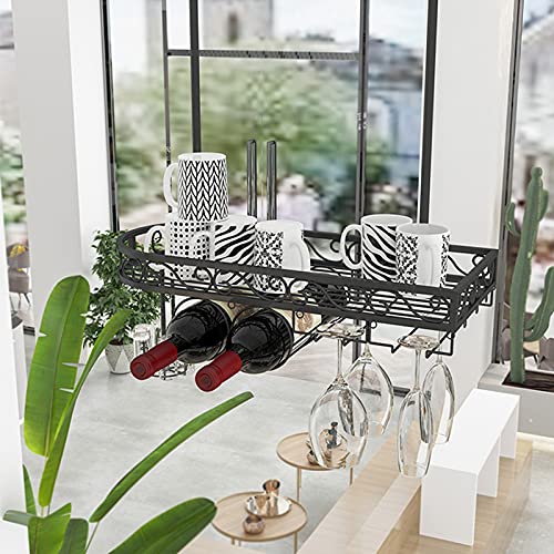 SUCHETA Wine Rack Hanging Wine Glass Rack Wine Bottle Rack, European Style Hanging Wine Glass Rack, Upside Down Wine Rack, Home Creative Wine Cab