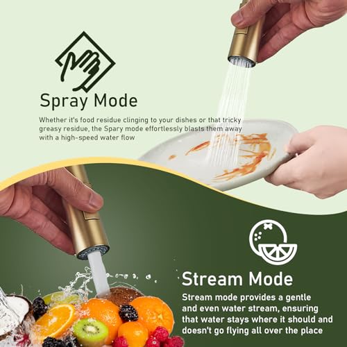 - Gold Kitchen Taps: Multi Function Pull-Out Spout Sprayer, 2 kind of water mode( stream/ spray),Hot & Cold Mixer water. Flexible Smooth-Retract Hose with Counterweight.