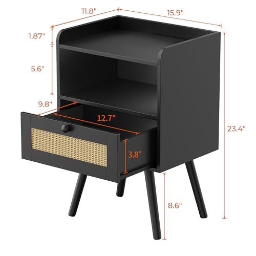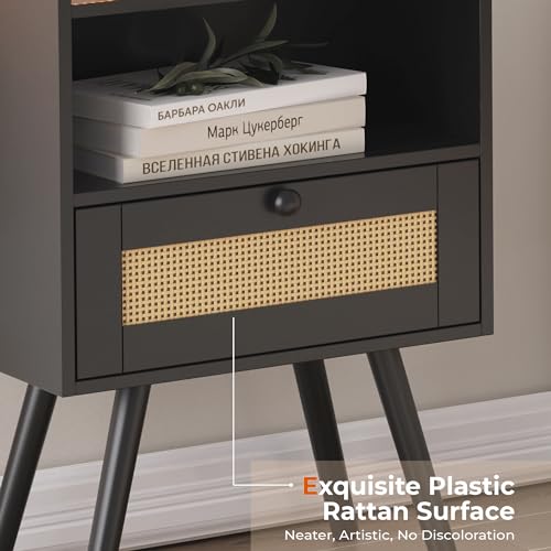 - [RATTAN NIGHT STANDS]: Nightstand set of 2! Show a coordinated look beside your bed. The rattan drawer surface adds a classic and freshing feeling to this bed side table. Streamlined lines make it a perfect bedroom or living room upgrader
