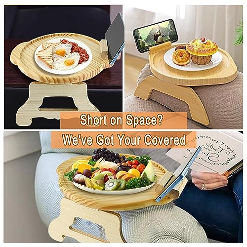 - FOLDABLE & ANTI SLIP: Our sofa arm tray is clamp-on design, Folding couch arm tray is a good replacement for huge console side table, great for home with limited space, apartment, and dorm. Friction-genera ting rubber grips stop your couch arm tray table from rolling around so you can sit your drink next to the remote without worry