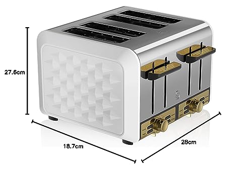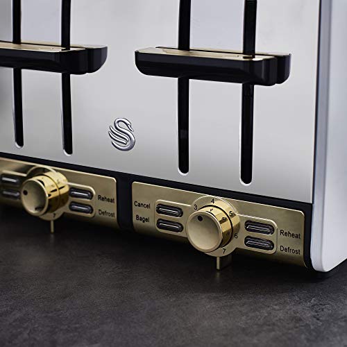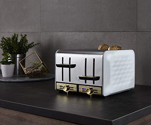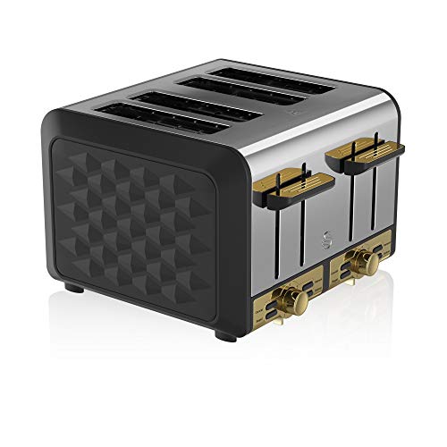 - Stylish Design – Equal parts stylish as it is functional, the chic and stylish 1920’s design of the Swan Gatsby toaster with its shadowy finish, matte black casing with diamond detailing, chic gold controls and chrome accents, adds a touch of class to any kitchen.