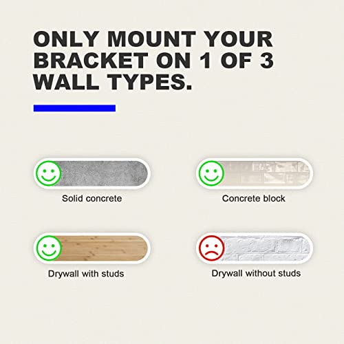 - 【Applicable to Many Wall Types】Suitable for solid concrete, concrete block, gypsum board, drywall with studs, etc. This TV wall bracket can be used in living room, bedroom, apartment, RV, yacht, etc. Note: This TV mounting bracket is NOT for drywall.