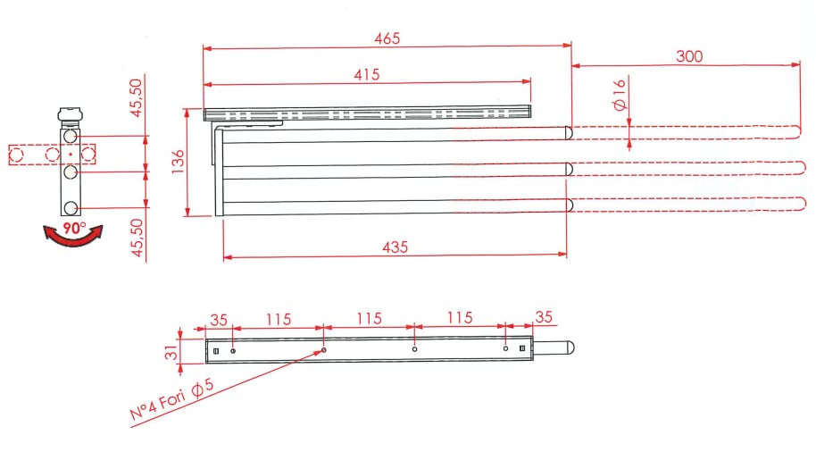 - VERSATILITY → Being telescopic and having the arm capable of rotating 90°, our towel rail has the possibility of sliding on a rail and therefore becoming removable, also it can be fixed both on the wall and under the work surface, being able to change the inclination of the arms by 90°.