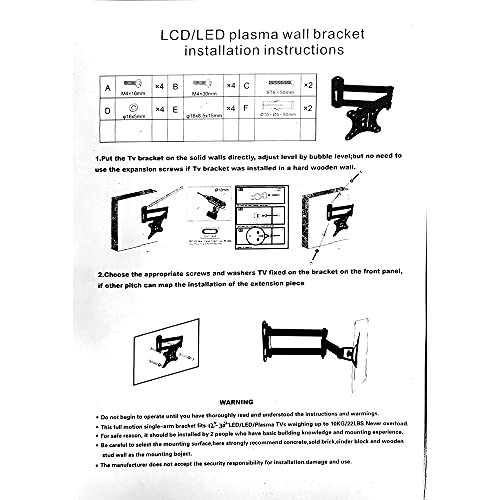 - TAHA TV Wall Bracket Mount Mounting Tilt swivel for Most 14 30 Inch LED LCD OLED Plasma TVs MAX VESA 100x100mm