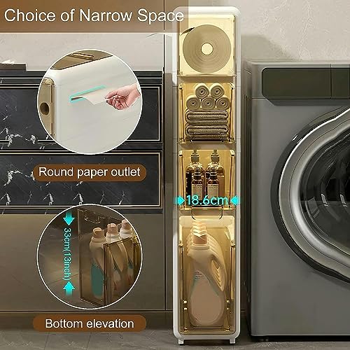 - 【Large Storage Capacity】Our vertical bathroom storage floor cabinets are fully designed and can be stored in every place.Trinkets and toilet paper can be placed on the top of the lid.Drawers of different heights on each level help you organize and store towels,toiletries and cosmetics.The bottom heightened drawer can meet the storage of medium and large items