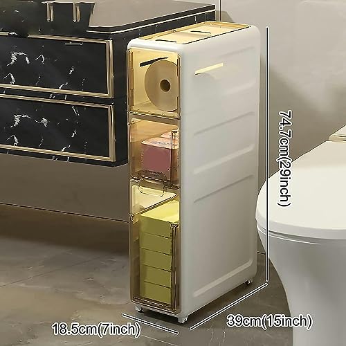 - 【Every Gap is an Opportunity】Measuring 7'W x 15''D x 22/29/36''H,the small bathroom storage cabinet is suitable for any small space,including between the refrigerator and the wall or next to the washing machine or toilet narrow gaps.Help tackle clutter in your bathroom and kitchen with this vertical storage drawer