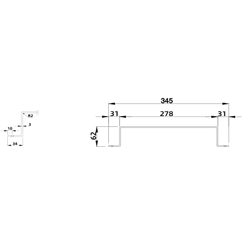 - Width: 345 mm, height: 20 mm, depth: 62 mm, hole spacing: 325 mm