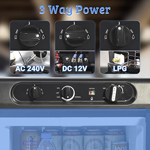 - 3 Way Fridge Camping - 3 way fridge can be used indoor and outdoor use. The gas fridge does not be limited in using environment. The dimension is 46.2cm(W) x 48.0cm(D) x 69.5 cm(H) and is suitable for any places.