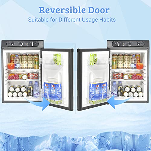 - Convenient Design - Equipped with a reversible door, the gas fridge is suitable for different usage habits, and two adjustable shelves can give you more space with ease.