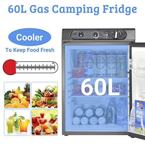 - Compact Size - With 60L large capacity and compact size, the 3 way fridge camping can store more good and be portable, which can be used for outdoor activities.
