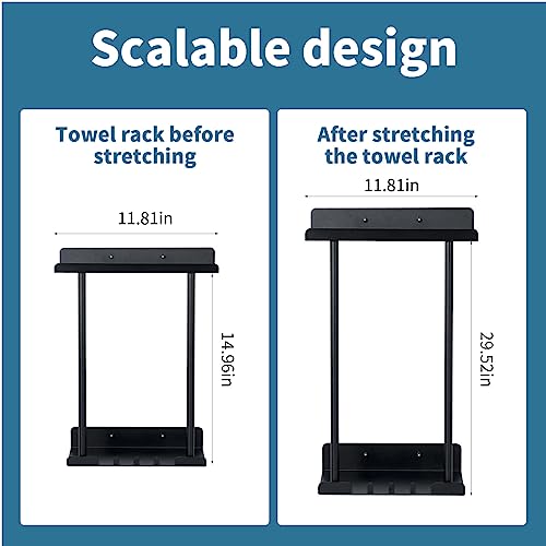 - 【 Bath towel storage location 】: The Terkarlie bathroom towel rack is 6.29in/16cm away from the wall, with sufficient width for convenient storage and a height that can be stretched from 14.96in/38cm to 29.52in/75cm. This bathroom towel storage area can accommodate multiple regular sized bath towels.
