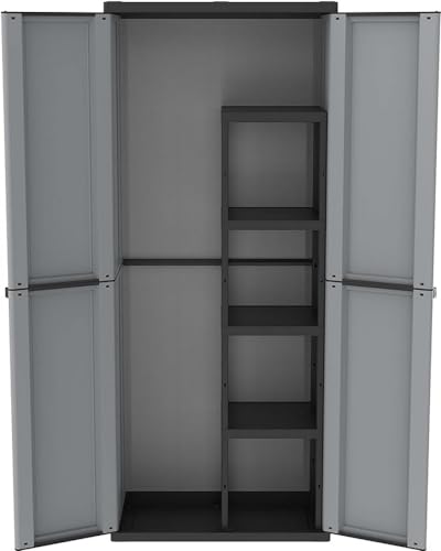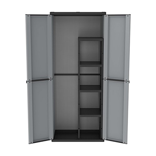 - Features: resin cabinet with 2 doors, internal shelving with 4 fixed shelves. Maximum support per shelf of 10 kg evenly distributed