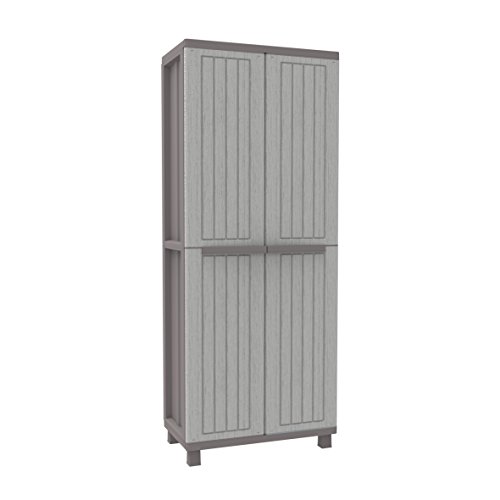 - Plastic with wood effect: the wood effect of the outer surface of the doors gives a modern and adaptable design to the garden furniture