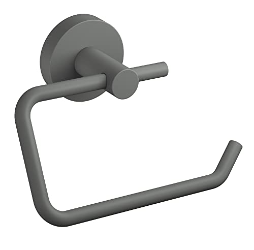 Home Bathroom Furniture tesa® MOON GREY Toilet Paper Holder, matt grey – Roll holder without lid for industrial style and modern bathrooms – drill-free, incl. adhesive s