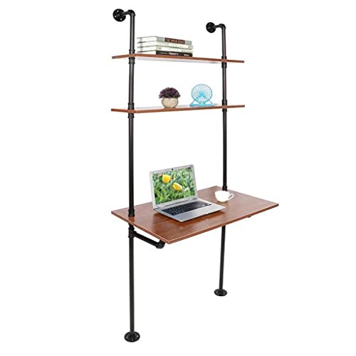 TFIIEXFL Industrial Style Computer Laptop Desk Storage Table with Shelves Wall Bookshelf for Home Office Home Office Storage Wall Table
