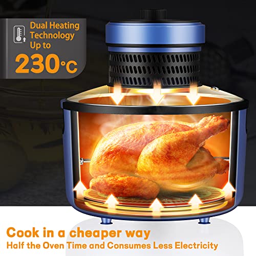 - 【Oil-Less Healthy & Fast Cooking】The XXL air fryer features patented dual heating elements that reach temperatures up to 230°C, cooking 50% faster than other models. With its Automatic Rotating Function and clear cook window, making crispy fried chicken, fries, pizza, and more is effortless. Enjoy your favorite dishes without the extra calories.