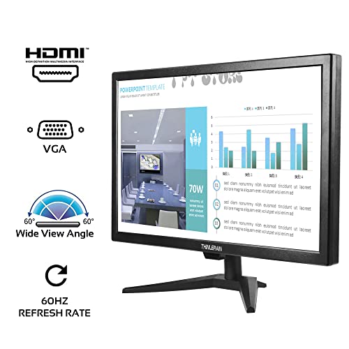 Product Description 1600 X 900 HD resolution The HD20 20 Inch PC monitor with 1600 X 900 HD resolution in a 16:9 aspect ratio presents stunning, high quality images with excellent detail that not only enhances users¡¯ working efficiency, but creates outstanding visual enjoyment. Thinlerain 20 inch Monitor 16:9 Widescreen Equipped with a 16:9 aspect ratio and 1600 X 900 native resolution, this monitor is designed for multitasking and improving productivity for a variety of applications. 5 ms Responsive!! Deliver high-quality moving images for more enjoyable movies. Rich Multifunctional Ports Thinlerain PC monitor provides a rich set of video input options for Raspberry Pi, DSLR, PC DVD,VCD,TV-Box, CCTV Security camera, PS4,Nintendo Switch,WII etc other devices with HDMI port use. By plugging with a TV-stick, you can also use it as a small TV. VESA Mountable & Dual Speakers The HD20 is VESA mountable (100 x 100mm) with an easily detachable base. This flexibility is accented by its slim design and clean look. Designed with dual integrated speakers.