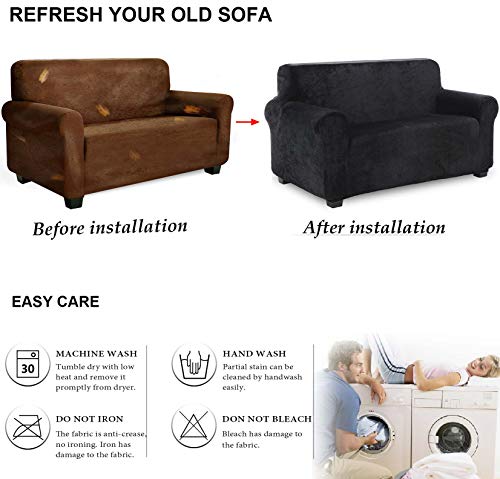 • ✔HIGH-END & LUXURIOUS FABRIC: Not like those cheap and thin fabrics of others, These slipcovers are crafted by using high quality velvety dense pile fleece, SUPER soft, smooth and comfy. No fading, no pilling, wrinkle free & ECO friendly. Stretchy and strong enough to fit most types of sofa perfectly. Not only protect your sofa from stain, wear, scratch and tear, but also bring your old sofa a luxurious, brilliant and high-end looking. Ideal for families with children and pets.