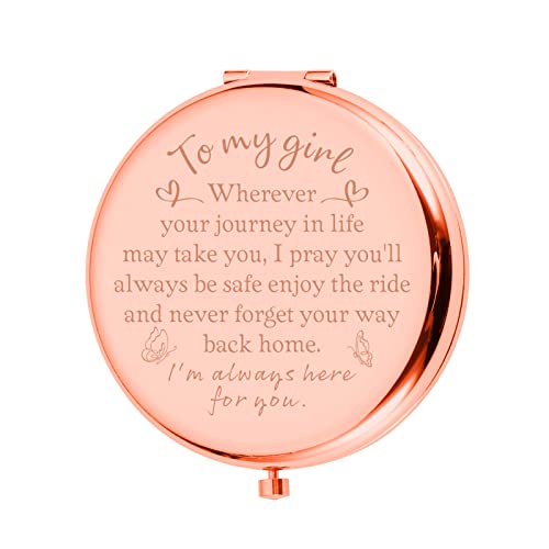 • ✿【Gifts for Daughters from Mother】--Inspirational gift mirror engraved with “To my girl, wherever your journey in life may take you, i pray you will always be safe, enjoy the ride, and never forget your way back home, i am always here for you.” Heartwarming gift for daughter, stepdaughter, niece, granddaughter, adopted daughter. This is a meaningful keepsake to remind your baby girl that you will always love her.