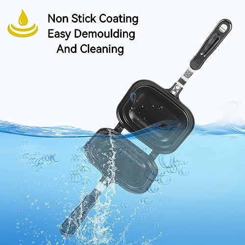 - 🍰【DOUBLE-SIDED DESIGN】---The sandwich toaster adopts double-side baking design, save you more time and efforts. Double Sided Frying Pan Can be used over gas or electric stove or picnic bonfire. High efficiency, just need several minutes, and you can get the delicious waffle cake or sandwichs!