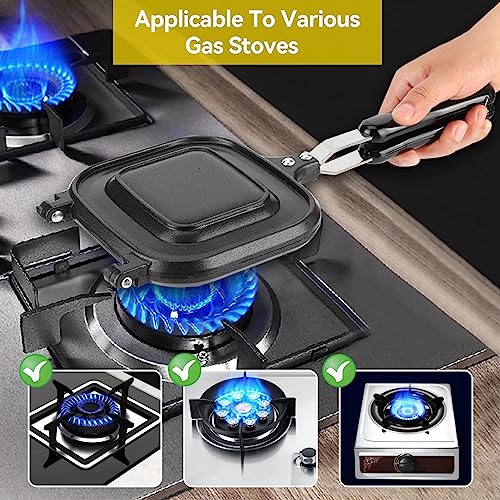 - 🍰【STOVETOP SANDWICH MAKER】--- Panini Press or Grilled Cheese Maker Made of premium aluminum material, high temperature resistant. Fast and even heating, saving time. Toasted Sandwish Maker Constructed to retain and distribute heat quickly and efficiently for even cooking.