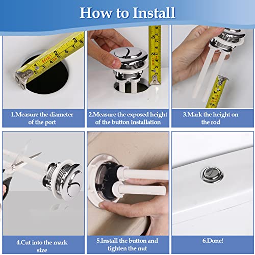 • 【Durable Material】Dual flush toilet push button is made of ABS engineering plastic, the button surface is chrome-plated, which is not easy to age, corrosion-resistant and anti-wear.