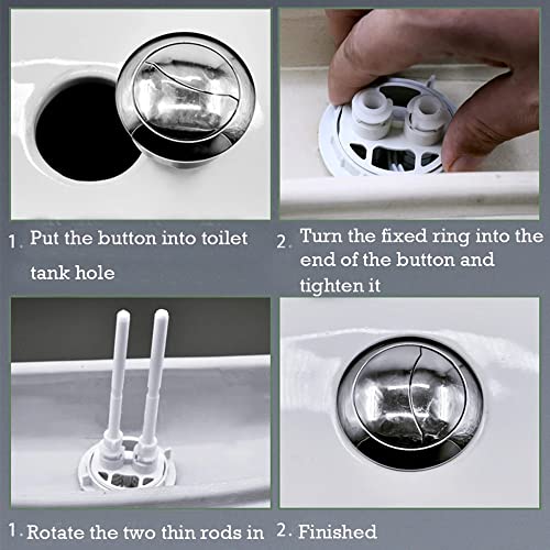 • 【Easy to install】Adjustable flush toilet button installation steps are very convenient. No drilling or other tools needed, simply open the toilet lid, pull out the old button, and put the new dual toilet button in, screw it up and use it