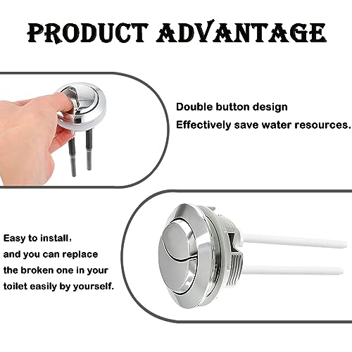 Toilet Flush Button(Silver),Round Head Toilet Flush Button,Toilet Push Button Flush Replacement,Two Rods Dual Push Button Toilet Flush Button for