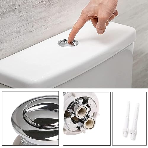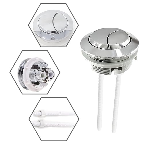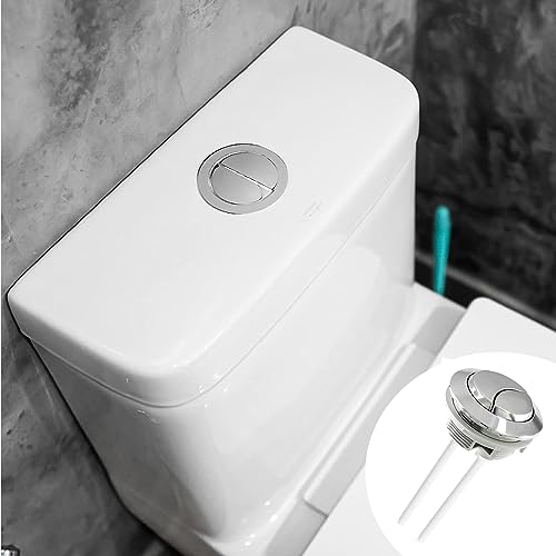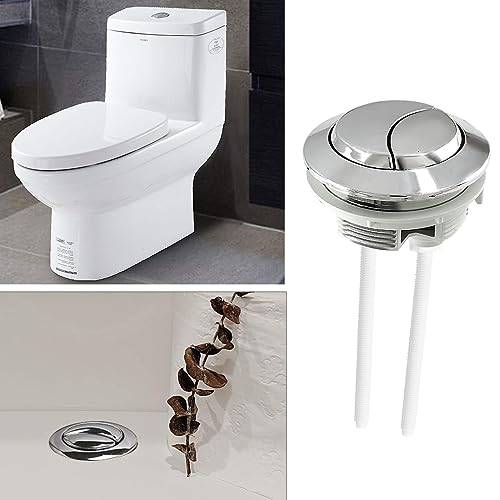 Home DIY & Tools Toilet Flush Button(Silver),Round Head Toilet Flush Button,Toilet Push Button Flush Replacement,Two Rods Dual Push Button Toilet Flush Button for