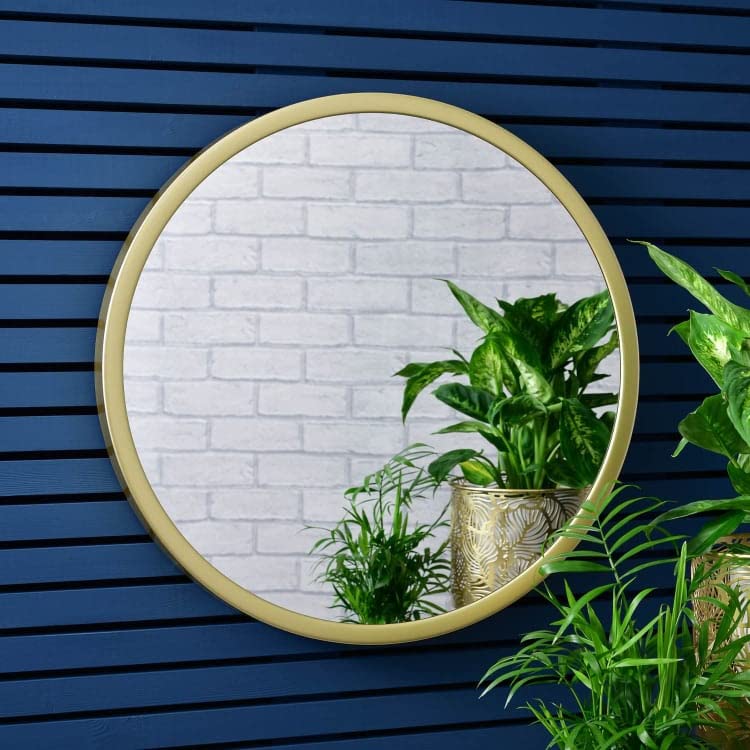 This decorative gold plastic mirror with chain is suitable for indoor and outdoor use.