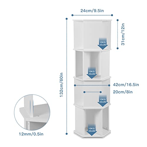 - 📙【Rotating Bookshelf Specs】The rotating bookcase size -132*43*39cm/51*17*19in; Our Hexagonal Rotating Booksheld is made of high -density medium fiber plate material, strong durability, long service life life span.