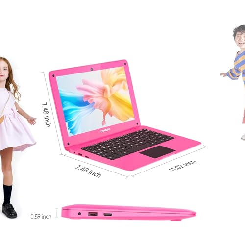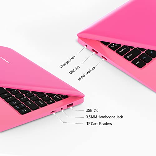 TOPOSH 10.1 Inch Laptop Windows 10 Computer Mini PC Notebook Celeron N3350 4GB RAM + 64GB eMMC Dual-Core Graphics 1.1 GHz US Keyboard-Pink