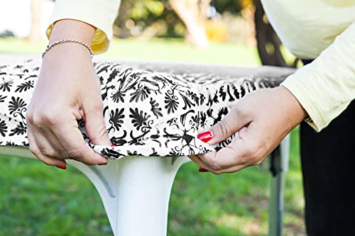 - ★ TIME SAVER- EASY TO INSTALL AND REMOVE: This fitted table cloth can just be opened and put in place so instantly and easily by one person. After use, wipe, dry and just slide it back off the table and fold it away for the next time