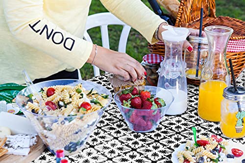 - ★ STAY PUT DESIGN Elastic corner Tablecloth means: ☑ NO more table cover blowing in the breeze or shifting when people move from the table. ☑ NO more pulling, tugging, or tripping or everything being blown over. ☑ NO need holder clips when you use this Plastic TableCloth