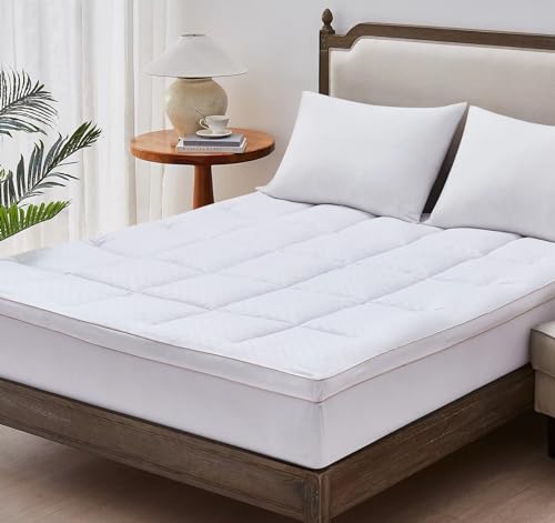- Ultra Fluffy & Super Soft: TopTopper mattress topper with tight woven and cooling fiber Technology padding makes the mattress topper super fluffy with breathable circulation inside, so that the mattress topper to maintain softness and elasticity. The ergonomic angle design fits perfectly on your back, allowing you to have a good night's sleep.
