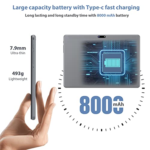 - 🔋Long-lasting Battery Life: The excellent tablet has a built-in 8000 mAh high-capacity battery. One full charge can support up to 10 hours of online video, 16 hours of e-reading, or 5 hours of online gaming, powering you through a full day of fun. Charging it with the USB-C port, this tablet is your key to nonstop entertainment. With dual speakers, you can watch videos, check social media, listen to music, Wherever you are and so much more.