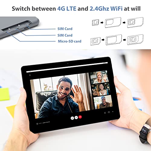 - 📞4G LTE/SIM+2.4GWIFI: With 2.4Ghz Wi-Fi connectivity. Android tablet can switch between 4G LTE cellular data and 2.4Ghz WiFi to connect to the internetstay connected anytime anywhere, Zoom class, Skype meetings, Facebook, social media, games...the world is at your palm. The latest Bluetooth 5.0 connectivity supports all your favorite apps.