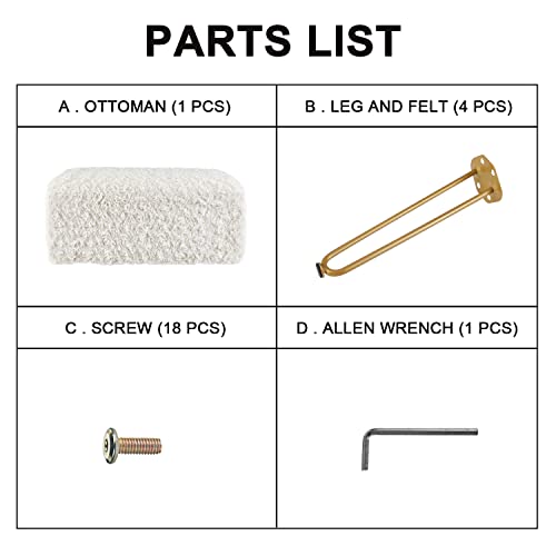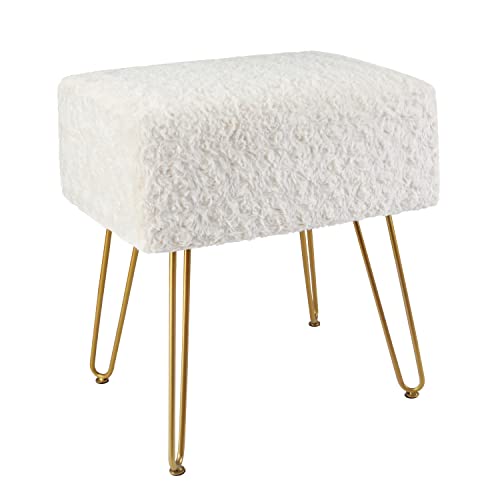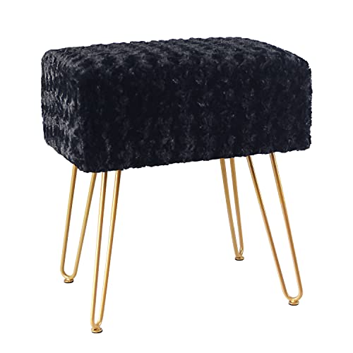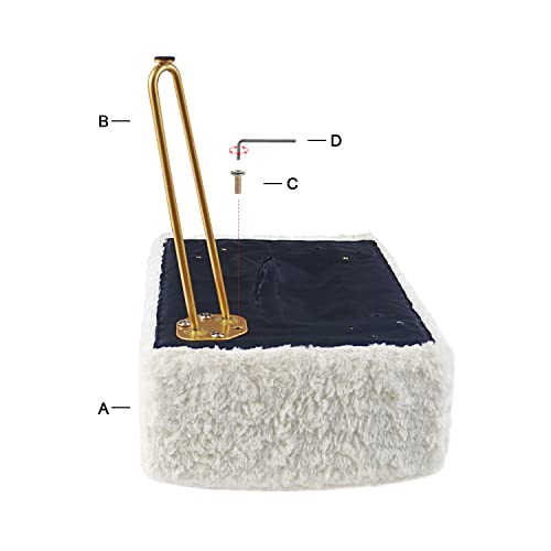 - STURDY & STYLISH DESIGN. rectangle ottoman seat is wrapped in soft dehaired angora with cushioned and rose upholstery for the ultimate comfort. Stury base features with 4 metal legs in powder coated gold finish. Really soft and comfortable seat is for your choice.