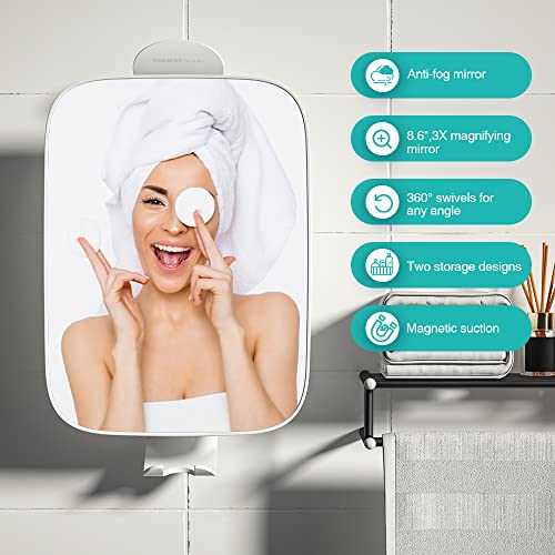 Product Description Elegant design matches any decor The vanity mirror features a modern design with a white finish and fits perfectly into any decor. Thanks to the 3X magnification double-sided mirror, the specific details of your skin are clearly visible. It is perfect for applying makeup such as lipstick, eyeliner, eyeshadow and eyebrow pencil. Important note: Before ordering this mirror, you should know that one side of the mirror is 3x magnification. Anti-fog: This anti-fog shaving mirror utilizes scientific basics to keep your mirror fog-free for a safe shave. Keep the mirror under the water jet to balance the temperature difference - for an instant fog-free experience while showering. Accentuate your beauty Our mirror is equipped with a 200 mm x 150 mm wide, crystal clear, ultra-reflective glass. With the powerful 3x magnification, you can enlarge even the smallest details of your face to highlight your best features. It is perfect for applying makeup such as eyeliner, mascara, eyebrow pencil and plucking unwanted hair. Modern bathroom accessory High quality plastic The hooks on the bottom can be used to hang washcloths, towels or razors. Maximum adjustability The 360 degree rotation allows full rotation for any desired angle or position. A practical ball joint makes the mirror swivels in all directions, so you always have the best view. Safe for use Provides an explosion-proof function that will not hurt your hand even if it breaks Ultimate transportability When disassembled, our compact, magnifying mirror does not take up space in your luggage, so you can take it with you on your next trip. Best gift It is the best gift for ladies and girls in Halloween, Christmas, New Year, Valentine's Day, Mother's Day, birthday, party, performance, special occasions, etc Practical shower mirror: The mirror can be flexibly installed in the shower and bath