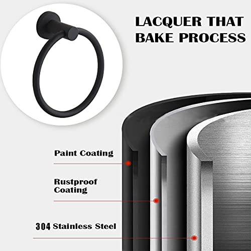 • Premium Material: The base, bracket and square ring of the black Towel Ring are 304 stainless steel. After electroplating, the product is durable and corrosion resistant. The smooth flat black coating from painting protect your towels and robs from scratches in everyday use.