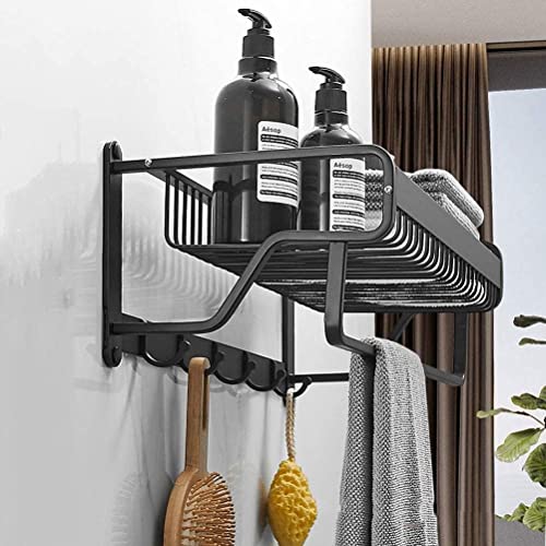 - ➤ Multifunctional towel shelf--Storage Shelf with Towel Racks and 5 Hooks , The net basket design can save space.Ideal for use in bedrooms, bathrooms, and closets.
