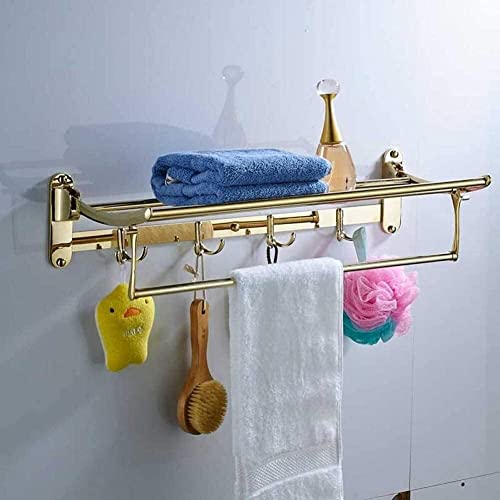 Towel Rack Towel Rack Black Bronze 60Cm Brass Towel Rack Folding Bath Towel Holder Double Towel Bars Bar Wall Towel Hook,Golden