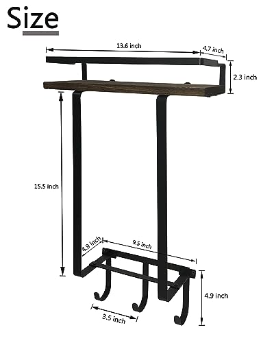 Towel Racks for Bathroom,Hanging Towel Storage for Rolled Towels with Wooden Shelf and 3 Hooks, Rust-Proof Metal Towel Holder